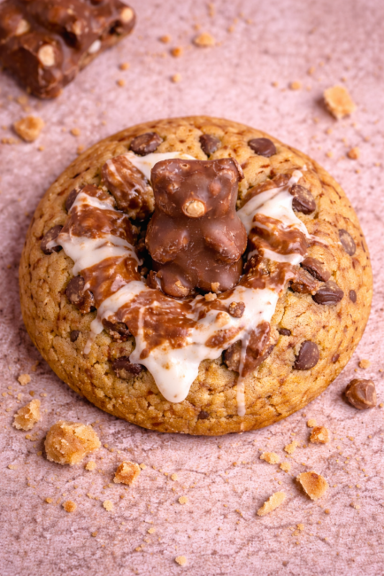 Un cookie XXL, généreux et ultra gourmand, pensé pour les amateurs de douceurs régressives.